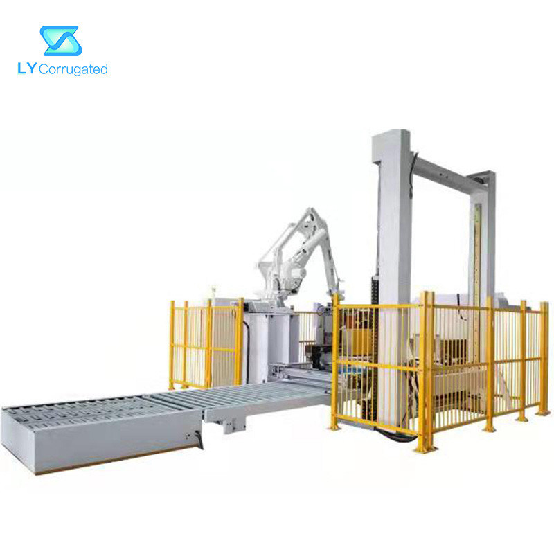 1, Hệ thống Palletizer Tiêu chuẩn Toàn bộ Dây chuyền Bao gồm: Băng tải con lăn tự động, Thiết bị định vị gói, Cánh tay robot, Tạp chí Pallet tự động, Thiết bị lưu trữ tờ giấy, Thiết bị ép pallet tự động